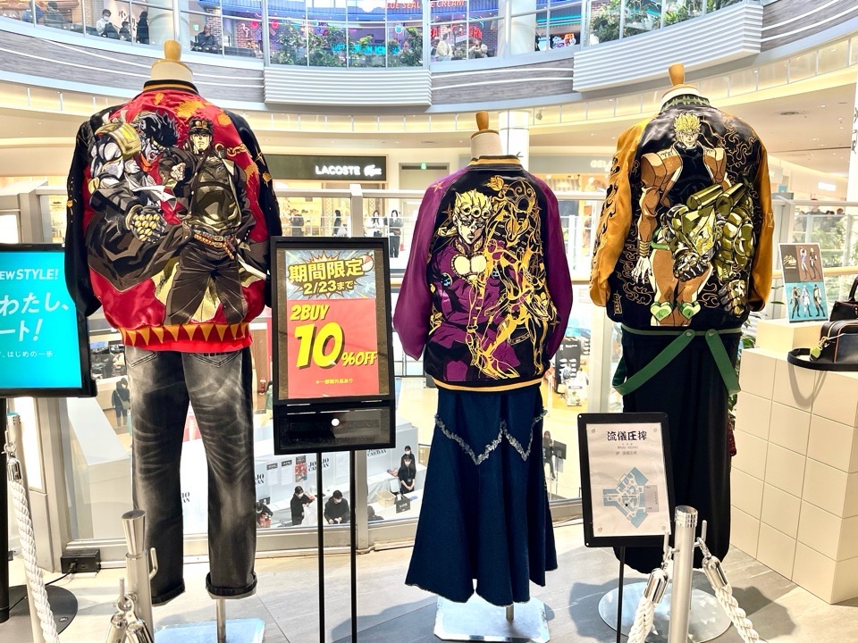 ショッピングモール内にはジョジョコラボ中の衣料品などの展示もありました!
