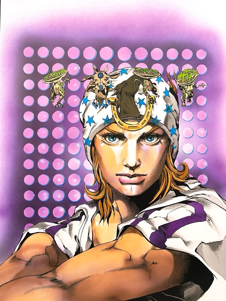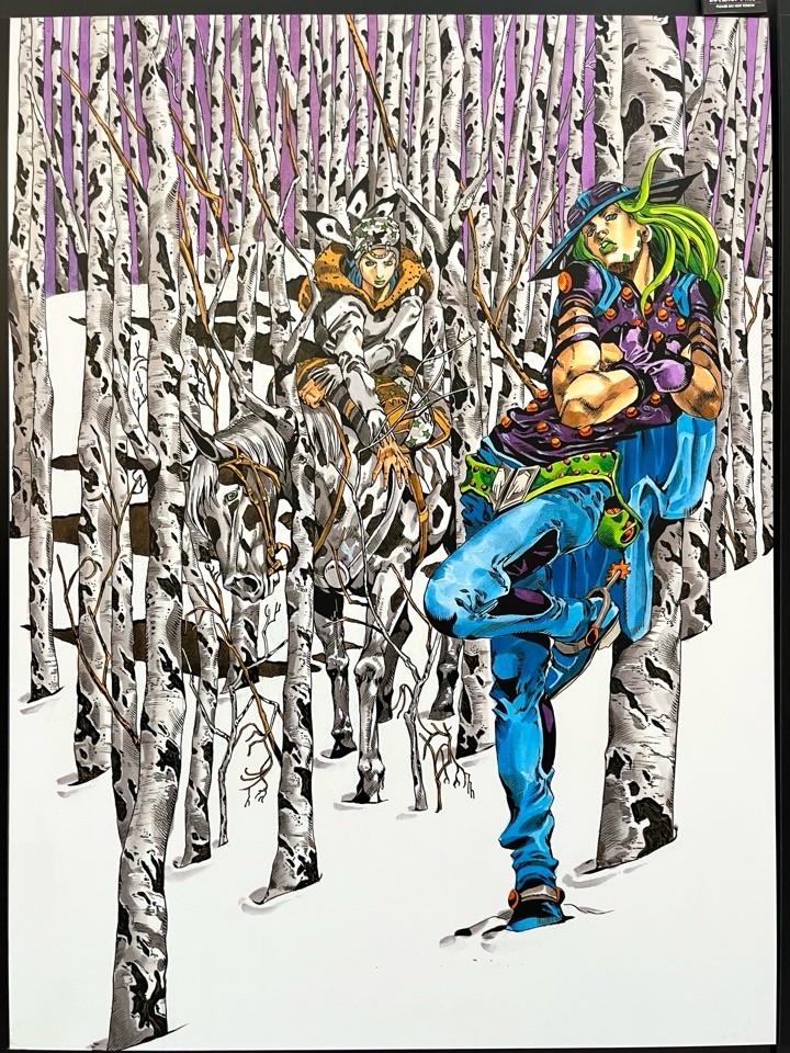 写真になっちゃうと完全に一体化してるように見えますが、肉眼で見るともっとハッキリ馬とジョニィが分かって同じ色なのに質感の描き分けができているの鳥肌でした。なんか凄過ぎて怖かったw