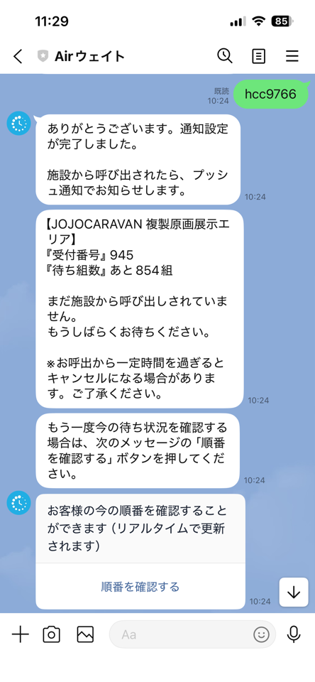 950ってどのくらい?と思っていたらLINEで確認できるAirウェイトという待ち状況管理アプリもあり親切でした。