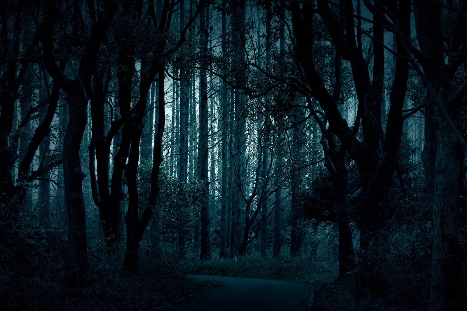 樹海へとつづく暗い夜道:不気味な雑木林の暗闇の写真素材 - フリー素材ぱくたそ