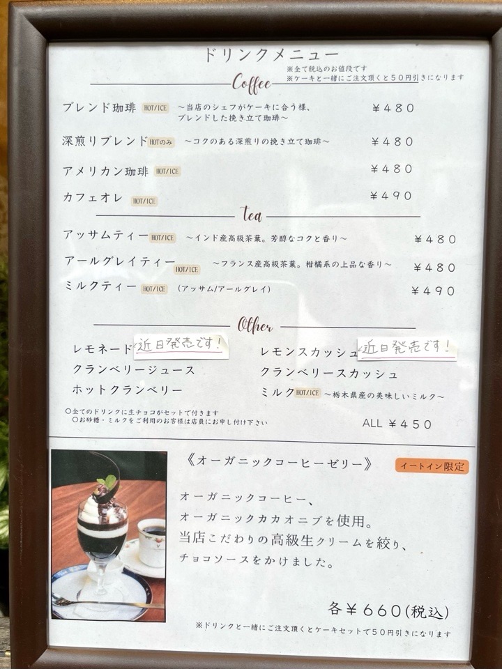 ケーキも500円くらいからあるので(ドリンクとセットで50円引き)、
