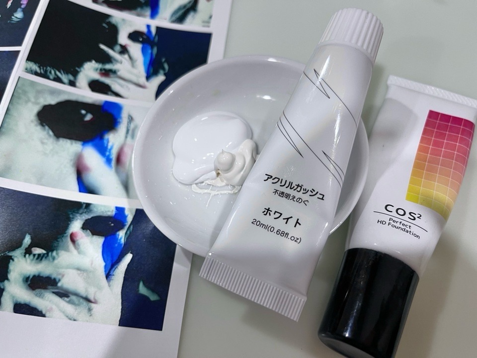 100%じゃさすがに良くないかなと思い、昔買ったまま使わずに余ってた白いファンデーションを混ぜて使用。メイクの上からだから直じゃないし、近々にコス予定のない今がチャンスだし…!